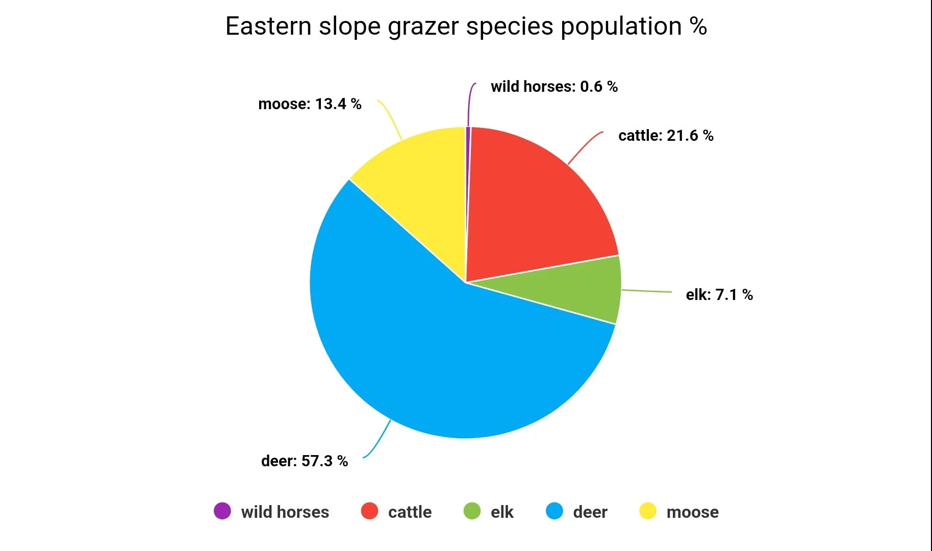 We have 7 pie graphs to go through today looking at the large mammal populations in the Eastern slopes