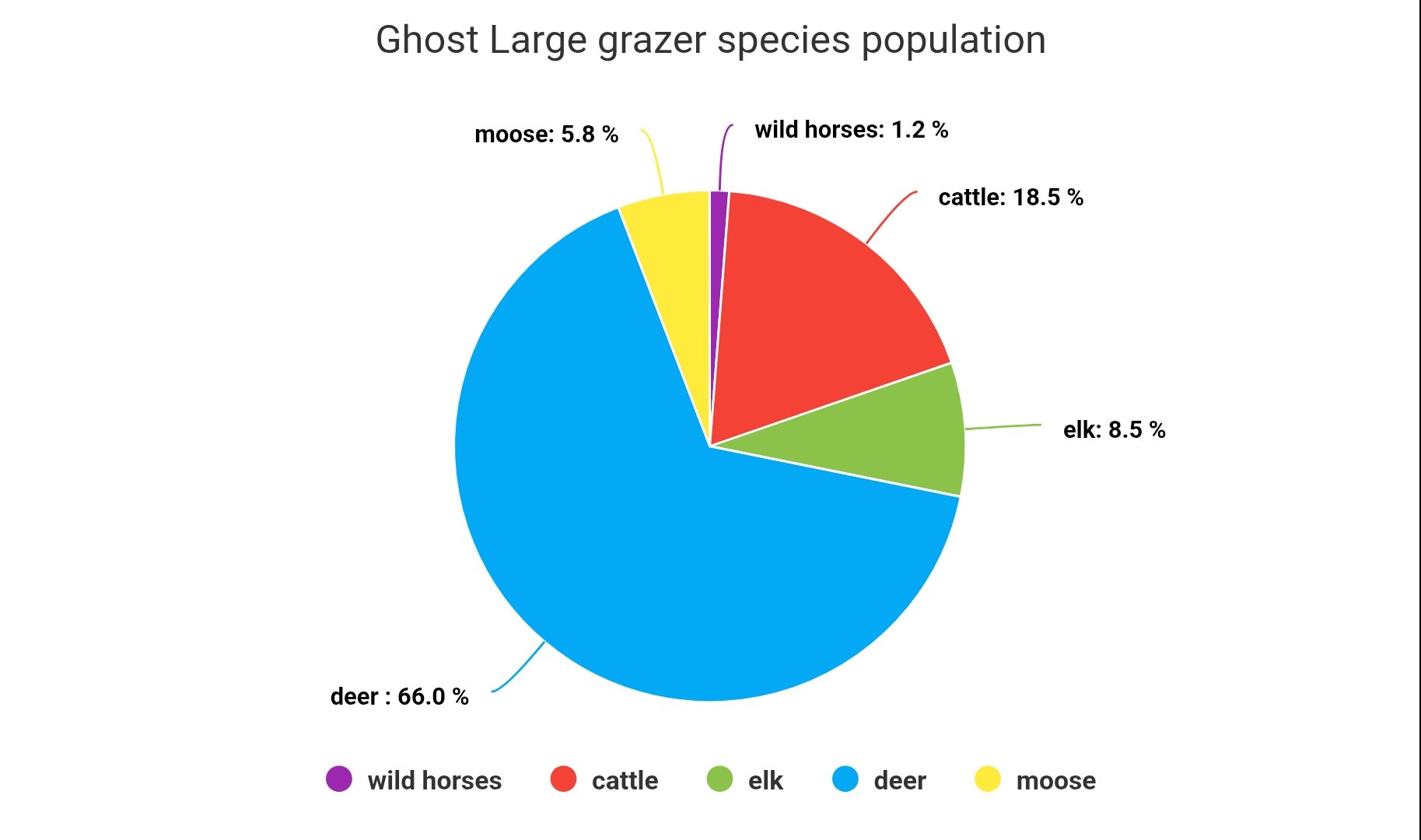 This is what we see when we put the Ghost grazing species into a pie chart based on population percentages in that zone. We will again start from the highest to lowest percentages