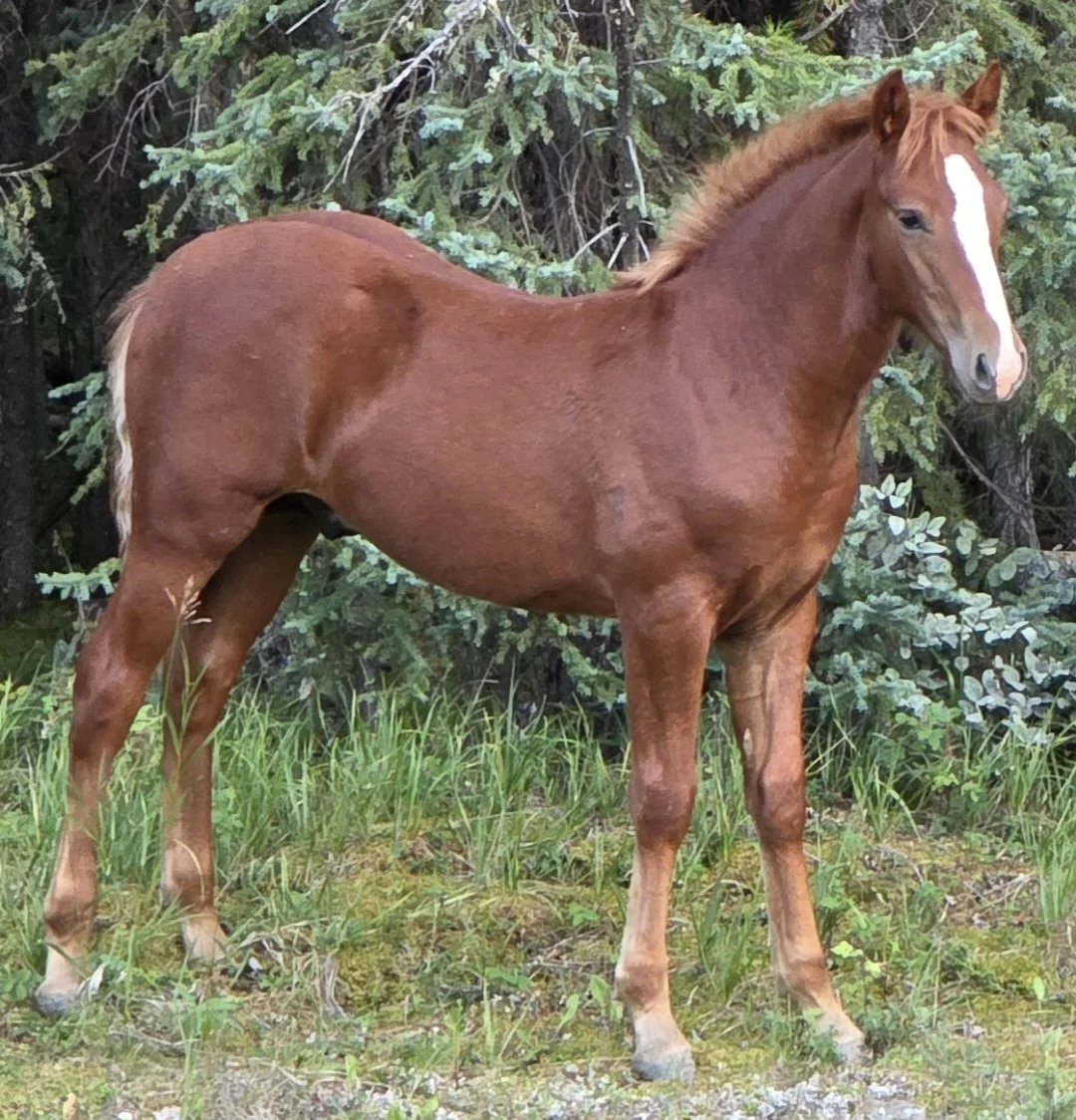 #21 phline (2025 foal) band 2 far left light bay foal, star