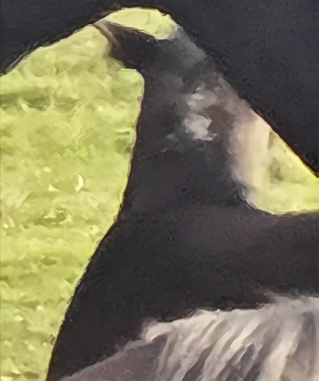 (Light Grey, 2 hind socks and a front right cuff noticeably whiter than her coat)